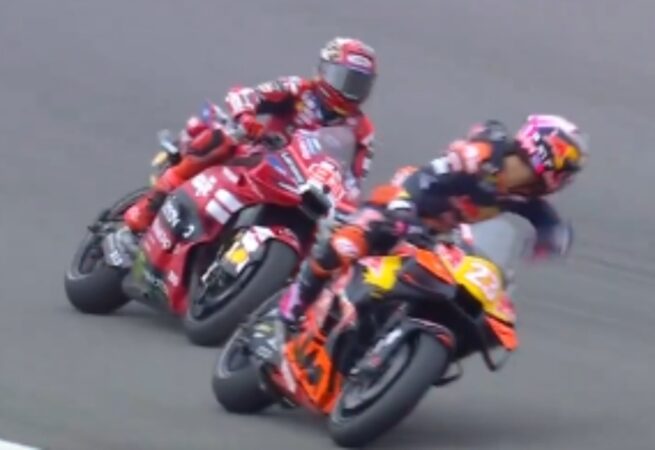 Majdnem a foglalkozás végén a KTM Nagyon ideges lett egy íven, amiben állítólag Marquez Nem hagyott helyet. A „riffrafe”-t a pályabírók is észrevették. Bastianini Feltűnő képet hagyott maga után, amely nagyon kifejezően szemrehányást tett Marcnak tettéért.