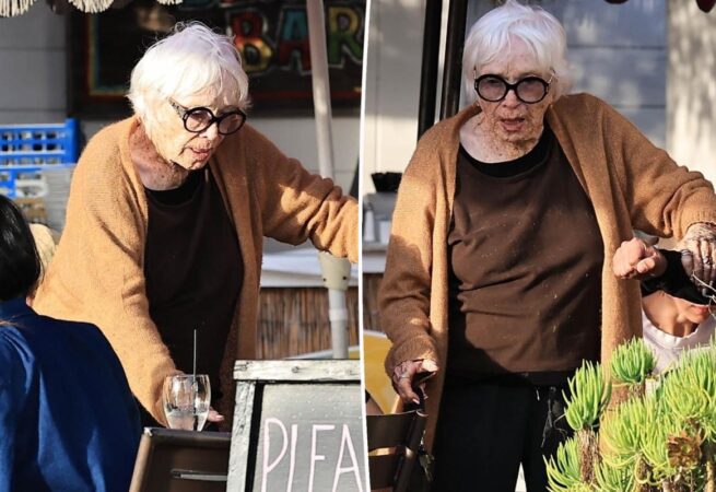 A 74 éves D’Angelo egy fekete nadrágot és egy bézs blézert viselt, színes sállal és arany napszemüveggel kiegészítve.