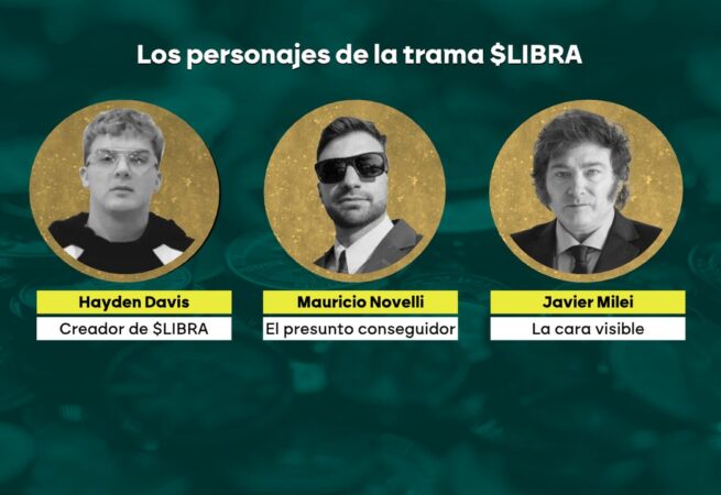 A $Libra kriptoátverés szereplői: Mauricio Novelli meghúzta a szálat, Hayden Davis megalkotta a kriptovalutát és feltette a pénzt, Milei pedig a jól ismert arc