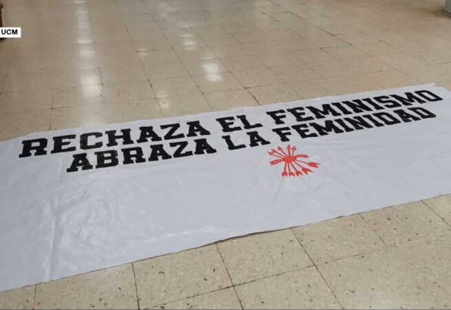 Erőszakosan léptek be a Complutense Egyetem Politikatudományi Karára, miközben óriási transzparenseket vittek magukkal. Ezekben a következőket lehetett olvasni: „Elutasítani a feminizmust, elfogadni a nőiességet”. A szimbólummal kísért szöveg Phalanx. Még a táblát is megpróbálták az épület külső oldalára kiakasztani.