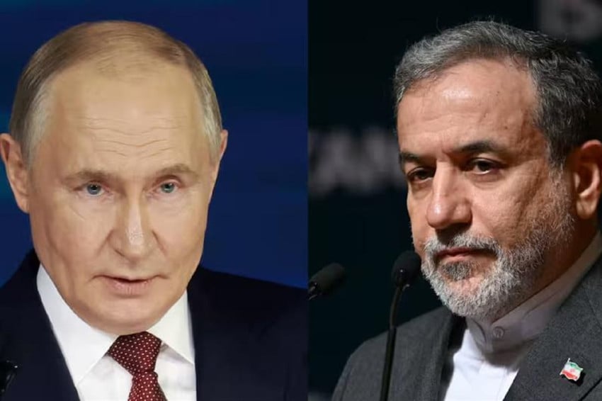 Abbász Aragcsi iráni külügyminiszter (jobbra) felkeresi Vlagyimir Putyin orosz elnököt hétfőn (2026.04.27), amikor az Egyesült Államok ismét tárgyalásra kéri Iránt. Fotó/Ahram Online