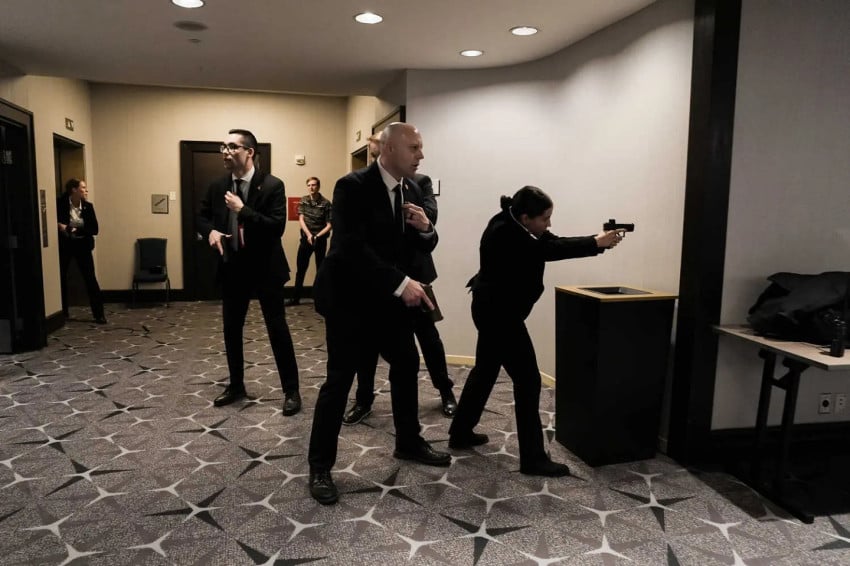 A titkosszolgálati ügynökök drámai módon evakuálták Donald Trump amerikai elnököt és Melania Trump first ladyt, miután a Fehér Ház tudósítóinak vacsoráját a Washington Hilton Hotelben lelőtték. Fotó/Salwan George/The New York Times