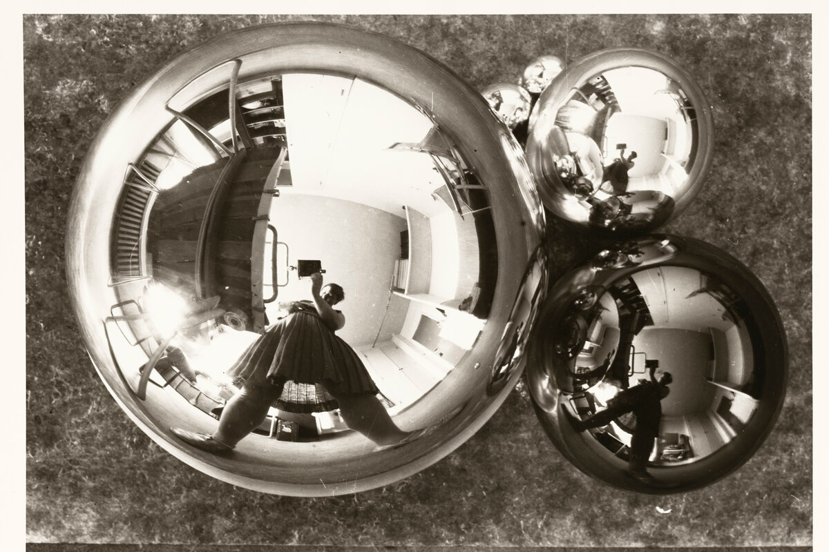 Grit Kallin-Fischer 1928-as önarcképén hanyatt fekszik, átlósan a képbe tolva, keresztbe tett karral, egyik kezében cigarettával. Marianne Brandt egy fémgolyó tükörképében rögzítette magát, marginalizálva és egy kamerával eltorzítva magát. A gömbben Dessau ikonikus Bauhaus erkélyei is láthatók. Florence Henri mellszobraként rendezte be magát egy fadeszkából készült asztalnál. Kitámasztott karral egy keskeny tükörbe néz, ami előtt két golyó van.