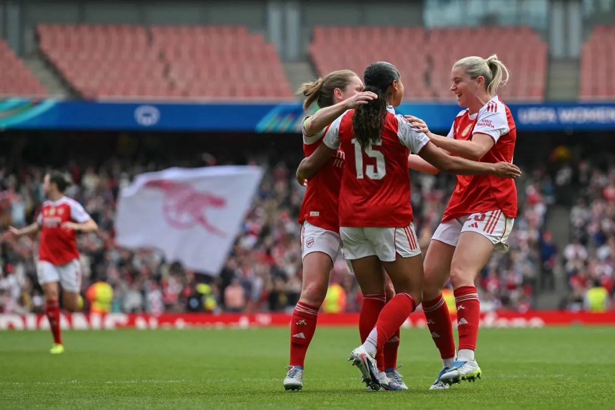 Az Arsenal vasárnap 2-1-re legyőzte francia vendége, az Olympique Lyonnais elleni gólt, így történelmi győzelmet aratott a két csapat első mérkőzésén a női Bajnokok Ligája elődöntőjében.